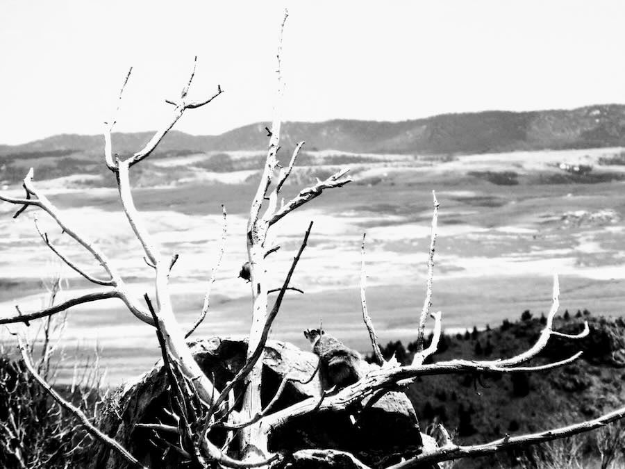 ~A long woodchuck pauses among weathered branches, gazing out across an open landscape shaped by time and exposure. Still and unbothered, it watches the land stretch beyond, neither passing through nor claiming-simply present. ~
